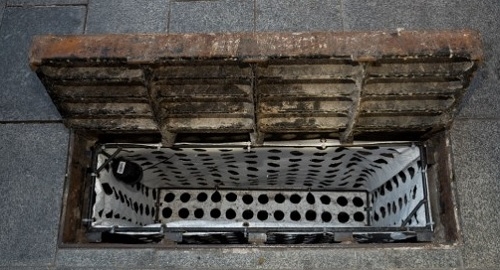 São bueiros com uma cesta que impede que resíduos sólidos sejam levados aos rios.