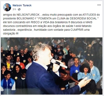 Para Tureck, o presidente fomenta um clima de desordem social e coloca em risco a vida dos brasileiros.