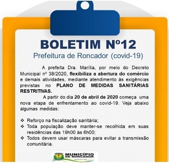 A prefeita de Roncador, Marília Gonçalves, assinou novo decreto neste sábado sobre o coronavírus.