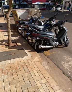 Sobre a caçamba estar na frente da rampa de acesso a cadeirante, em Campo Mourão. Foi criado estacionamento de motos no local, o que dificuldade o acesso ao cadeirante, mas ao lado tem a entrada da garagem.