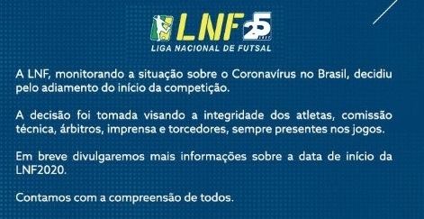A Liga Nacional de Futsal também adiou o início da temporada.