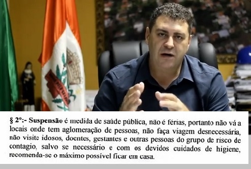 Edenilson Miliossi (Cidadania), prefeito de Barbosa Ferraz, no decreto que suspende as aulas na rede municipal de ensino; quarta-feira.
