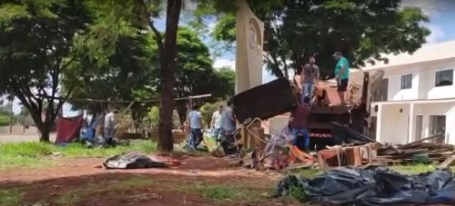A prefeitura de Campo Mourão desmanchou neste sábado dois barracos usados por índios na "pracinha" perto da rodoviária. A informação do município é que não havia nenhum indígena no local. Todos retornaram a aldeia, em Manoel Ribas, a pedido da Ação Social, por causa do coronovírus. A ação de desmanche encheu quatro caminhões de entulhos. O secretário Franco Sanches (Meio Ambiente) acompanhou.
