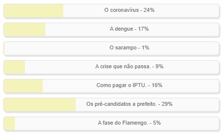 O resultado completo, que inclui a "dengue" (17%) e "como pagar o IPTU" (16%) está no quadro acima.