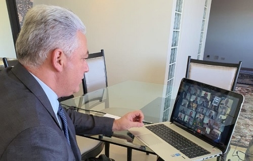 A Assembleia Legislativa iniciou nesta segunda-feira sessão por videoconferência. Vai continuar assim durante o período de enfrentamento ao coronavírus. O deputado Douglas Fabrício, por exemplo, participou da sessão da casa dele, em Campo Mourão. As sessões da Alep acontecem às segundas, terças e quartas-feiras a partir das 14h.