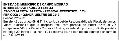 Em todos o município extrapolou o limite de 54% da receita corrente líquida com a folha de pagamento