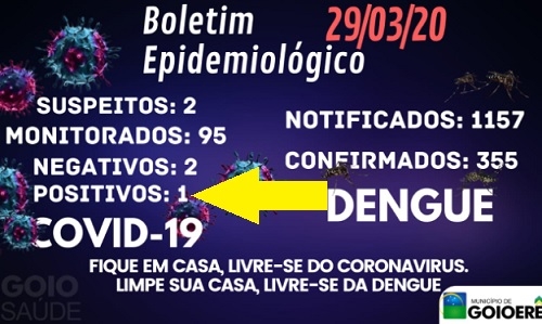 O município tem ainda dois casos suspeitos e 95 monitorados.