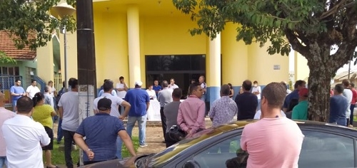 O prefeito de Goioerê, Pedro Coelho, fez reunião a céu aberto com comerciantes da cidade.