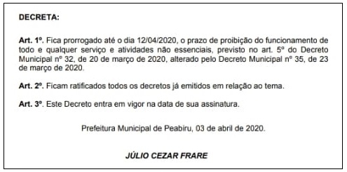 É o que diz novo decreto do prefeito Júlio Frare.