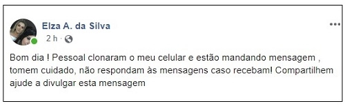 "Tomem cuidado, não respondam às mensagens caso recebam!", orientou.