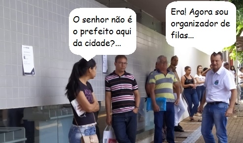 O clic é de Goioerê, nesta quarta-feira, onde o prefeito Pedro Coelho, junto com a gerente da Caixa Econômica Federal, iniciou uma campanha para orientar a população a evitar aglomeração na frente do banco.