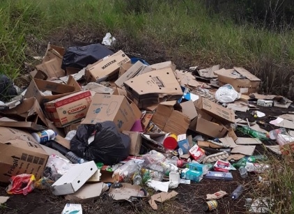 "Fundos da pracinha do jardim. Capricórnio. Lixo e outros resíduos, próximo a bacia do Rio do Campo. Lamentável".