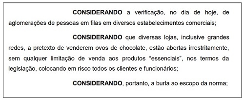 A promotoria também recomendou medidas para se fazer cumprir a não aglomeração de pessoas.
