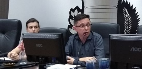 Baco Duarte (PSC), prefeito de Ubiratã e novo presidente da Comcam, ao reclamar da burocracia em discurso logo após ser eleito para presidir a entidade de prefeitos da região. nesta sexta-feira, em Campo Mourão.