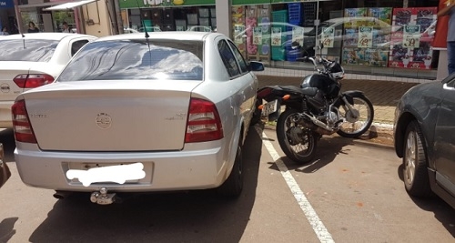 "Nesta sexta-feira ao centro de Campo Mourão. Ao ver uma vaga "livre", quando virei para estacionar... Teve um rapaz que viu a situação e tentou arrastar a moto um pouco para o lado para que eu conseguisse estacionar meu carro".