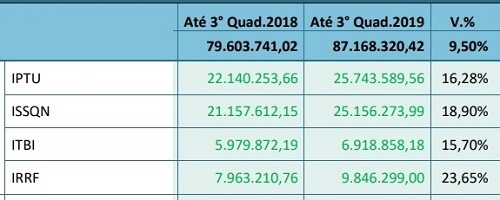 O ISSQN também cresceu bem (18.90%) e foi de R$ 21,1 milhões para R$ 25,1 milhões.