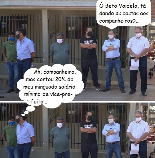 Os cliques são do fim de semana, quando o prefeito de Campo Mourão, Tauillo Tezelli, assinou ordem de serviço para asfaltar ruas do jardim Pio 12. A obra vai custar R$ 565,8 mil. O vice-prefeito Beto Voidelo participou. Como vice, ele ganha apenas um salário mínimo por mês e mesmo assim foi incluído no corte de 20% do salário para ajuda no combate ao coronavírus.