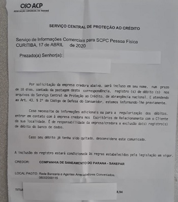 A concessionária não está cortando a água com conta vencida... mas está mandado a conta para o SPC. O que é melhor ou menos pior?