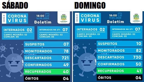 Campo Mourão confirmou umas um caso e chegou neste domingo ao 50º registro de covid-19. É que revela o boletim divulgado pela prefeitura. O número de recuperados subiu de 40 a 41 e os casos suspeitos de sete para 10. As internações na Santa Casa não tiveram alterações de sábado para domingo. Seguem dois leitos ocupados na enfermaria e sete na UTI.