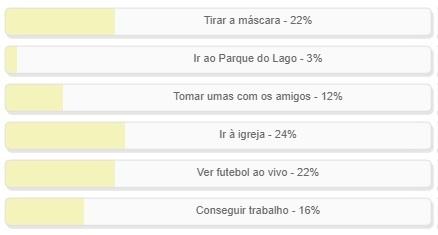"Tirar a máscara" e "ver futebol ao vivo" emparam na segunda posição, com 22% cada uma.