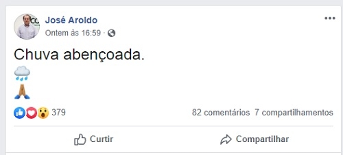 Na sexta-feira, a simples postagem "Chuva abençoada" teve 379 curtidas e mais de 80 comentários.