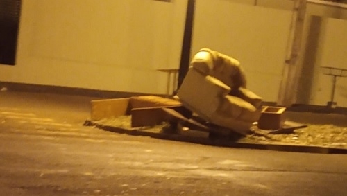 "Olha o serviço! Por volta das 19h desta quarta-feira morador jogo sofá e restos de outros móveis no canteiro da av. Jorge Walter, esquina com rua Devete de Paula Xavier. Isto por que cortaram a grama e limparam o canteiro. Estava muito limpo e bonito. É triste ver isso em meio a pandemia, isolamento, lutar contra a dengue, ficar em casa e ver isto..."