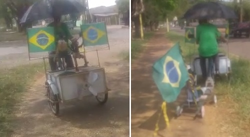 Por causa da pandemia não teve desfile de Sete Setembro em Campo Mourão, certo? Mas isso não impediu o seo Daniel Gonçalves, 81, de fazer o seu desfile particular. Com a bicicleta decorada com bandeiras do Brasil, ele foi flagrado desfilando pela av. John Kennedy, no Lar Paraná.
