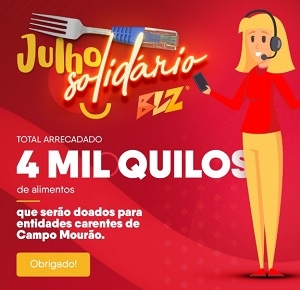 A BLZ Internet vai distribuir mais de 4 mil quilos de alimentos para entidades de Campo Mourão. Isso foi o que rendeu a campanha "Julho Solidário". Para cada nova assinatura que recebeu durante o mês, a operadora garantiu uma cesta básica. As entidades serão definidas esta semana e a distribuição está prevista para a semana que vem.