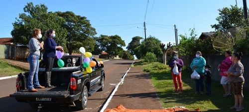A prefeitura de Farol fez homenagem aos idosos que participam do grupo da melhor idade. Como eles estão sem atividades devido à pandemia, a prefeita Angela Kraus e equipe da Ação Social é que foram até eles. Levaram álcool geral, máscaras e o pedido para que fiquem em casa. Não faltou o carro de som nem cartazes com mensagens de otimismo