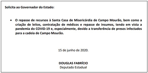 Em resumo foi isso que pediu o deputado Douglas Fabrício na sessão da Assembleia Legislativa desta segunda-feira.