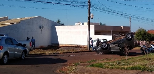 Acidente nesta segunda-feira à tarde no jardim Albuquerque, em Campo Mourão. Foi na esquina da av. José Wierzchon com a rua João B. Perdoncini. Um dos carros ficou de rodas para cima. Aliás, virou rotina ver capotamento em acidentes dentro da cidade. Carros leves demais? Alta velocidade? Falta de sinalização? Imprudência?...