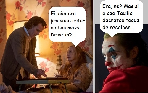 O toque de recolher iniciado nesta sexta-feira em Campo Mourão atingiu até o Coringa. O vilão estava em cartaz no Cinemaxs Drive-in, mas teve de se recolher na sexta, já que a sessão das 21h30 extrapolaria o horário do decreto (das 22h às 6h). Assim, o drive-in manteve em cartaz apenas a sessão das 19h, com "Minha mãe é uma peça 3" (sábado e domingo também tem).