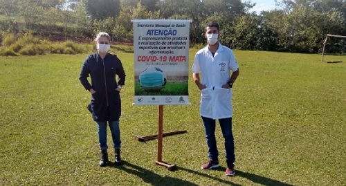 1) A prefeitura de Barbosa Ferraz colocou placas por campos de futebol da cidade deixando claro que é proibido evento que tenham aglomeração de pessoas. No cartaz até a bola aparece de máscara.
