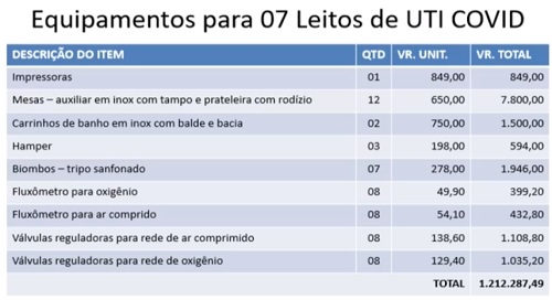 2) Como a cidade precisa ampliar a UTI, quis apenas mostrar o que é preciso para colocar uma unidade em operação.