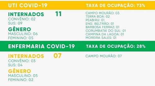 Na enfermaria, estão ocupados sete leitos (28%), todos mourãoenses.