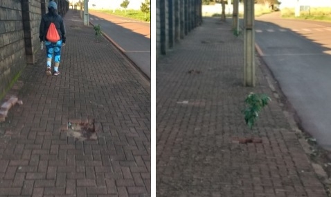 Em tempo: As árvore que tinham sido plantadas no meio do passeio foram transferidas para o local mais apropriado.