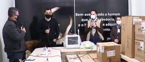 Cena 1 - A prefeitura fez live direto da Santa Casa para anunciar a chegada de 10 respiradores (cinco móveis). Disse que vieram do Ministério da Saúde e que os pedidos da Santa Casa eram de março e início de junho.