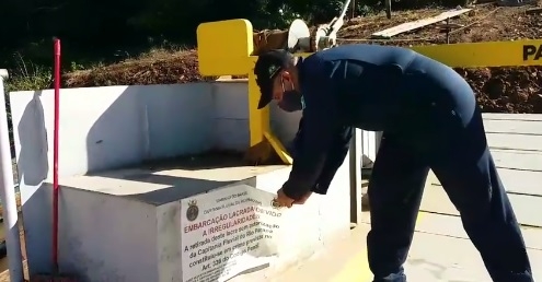 Agora é pra valer. Começou a funcionar nesta sexta-feira a balsa sobre o rio Piquiri, entre Campina da Lagoa e Guaraniaçu. Ela tinha sido interditada pela Marinha no final de janeiro, poucos dias após ser inaugurada. Na foto, momento em que o representante da Marinha retira o lacre colocado há mais de cinco meses. Segundo ele, as exigências foram todas cumpridas.