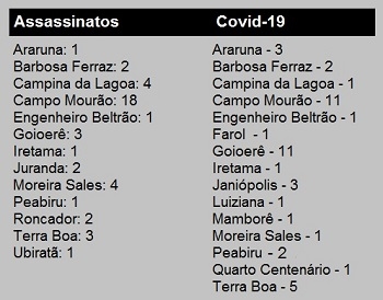 A região de Campo Mourão já tem este ano mais mortes por coronavírus do que por assasinatos.