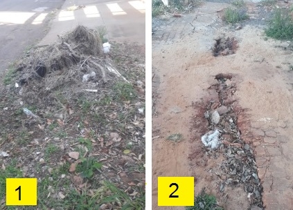 1) Calçada na av. 19 de Agosto. 2) Calçada na av. Mauro Mori. Não é fácil a vida do pedeste no centro de Goioerê.