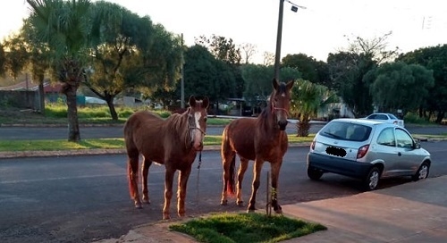 A prefeitura de Janiópolis reclama em redes sociais. Diz que vem recebendo "muitas denúncias" (e presenciando) animais soltos pelas ruas, além de maus tratos. Leia-se cavalos. "Encontramos muitos animais sem sombra, sem água, animais magros e com ectoparasitas (carrapatos, pulgas, sarna)", diz a publicação. Esta semana já teve multa. O valor é pesadinho: R$ 584.20.