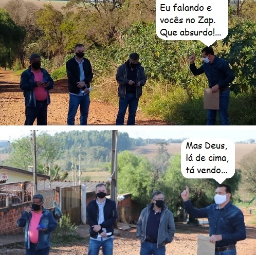Os cliques são desta segunda-feira, quando a prefeitura de Campo Mourão anunciou que fará asfalto nos últimos trecho de ruas da região do Damferi. Serão investidos R$ 453 mil financiados pela Caixa. O vereador Edoel Rocha discursou no local, enquanto o prefeito Tauillo Tezelli e o secretário Ireno dos Reis Pereira (Obras) deram uma checada no celular...