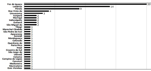 Onde? - Araruna 4, Barbosa Ferraz 3, Campina da Lagoa 1, Campo Mourão 26, Engenheiro Beltrão 6, Farol 1, Goioerê 2, Iretama 6, Janiópolis 2, Quinta do Sol 4, Roncador 5 e Terra Boa 2.