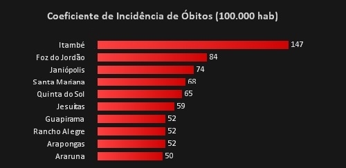 Quinta do Sol (65 por 100 mil) aparece na quinta posição estadual.