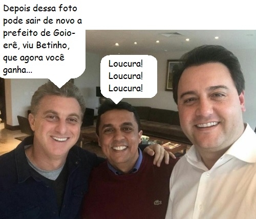 O clique é do Palácio Iguaçu, em Curitiba, O apresentador Luciano Huck (Globo) se reuniu com o governador Ratinho Jr e o assessor Betinho Lima não perdeu a chance de uma tietagem. Repare que a selfie foi feita pelo governador. Betinho foi vereador e candidato a prefeito de Goioerê. Em tempo: Huck é sócio do grupo Madero, que anunciou novos investimentos no Paraná.