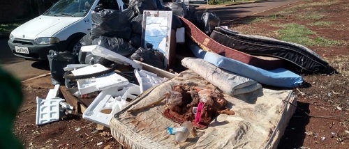 Saldo da "caminhada ecológica" realizada sábado no jardim Araucária, em Campo Mourão: oito colchões, dois televisores, um sofá, um espelho e 40 sacos de lixo de 100 litros cada. E pelo que foi encontrado, tem gente dormindo às margens do Rio do Campo.