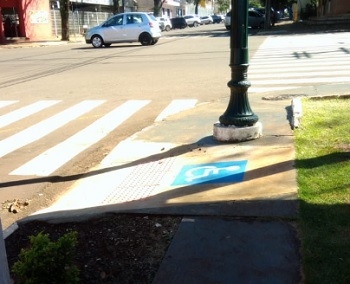 Na av. Irmãos Pereira, esquina com a rua Devete de Paula Xavier, a prefeitura fez a rampa para cadeirantes, mas deixou um poste republicano no meio do caminho.