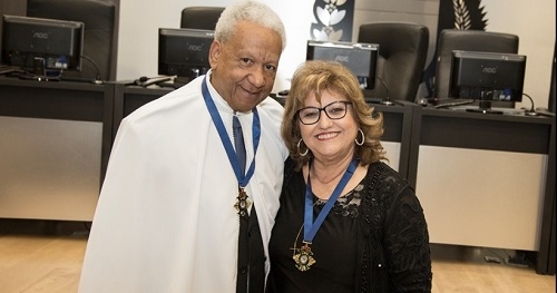 Os professores José Carlos Paraguaio e Cida Freitas receberam neste sábado a Comenda Vida & Liberdade. A homenagem é concedida todo ano pela Academia Mourãoense de Letras. A entrega marca o aniversário da AML, que completou 17 anos no mês passado. A sessão foi comandada pelo presidente Fábio Sexugi.