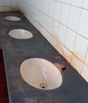 Situação do banheiro masculino do estádio Roberto Brzezinski. Uma torneira ainda sobrevive!