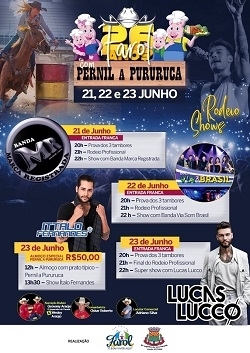 No domingo também tem a Festa do Pernil à Pururuca, seguido de show com Ítalo Fernandes.